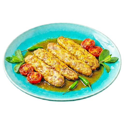 Minced meat kebab served in fresh bread, herbs, and veggies