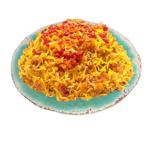 Rice mixed with split peas and beef stew