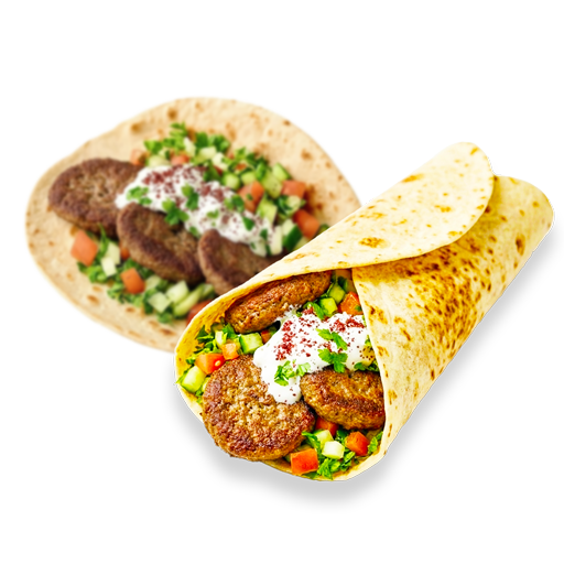 Minced meat kebab served in fresh bread, herbs, and veggies